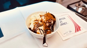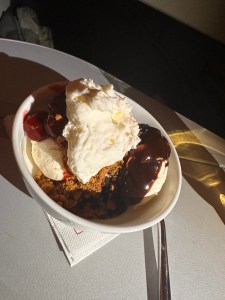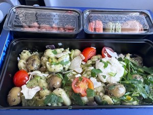 The meal menu is extensive, with a variety of dishes to choose from and there is great selection of premium wine as well as top shelf spirits. Before dinner service, we had been served a dish of warm nuts, smoked salmon, and soup and salad. We received an email approximately one week prior to our flight allowing us to choose a dinner entree and both my beef short ribs and my husbands fish entree were delicious. Then came the dessert cart where you could even have an ice cream sundae prepared to your liking. IS THIS HEAVEN??? Naw, but 36,000 feet above the earth will do just fine. About ninety minutes before landing in Rome we were served breakfast, a ricotta omelette and of course, a mimosa. One flight segment on the way home found us on a KLM flight and the food came in an adorable box that was itself worthy of the souvenir collection. Our final Delta One meal was a small pizza, Caesar salad and cream puffs that I was too full to finish. First flying world problems for sure!