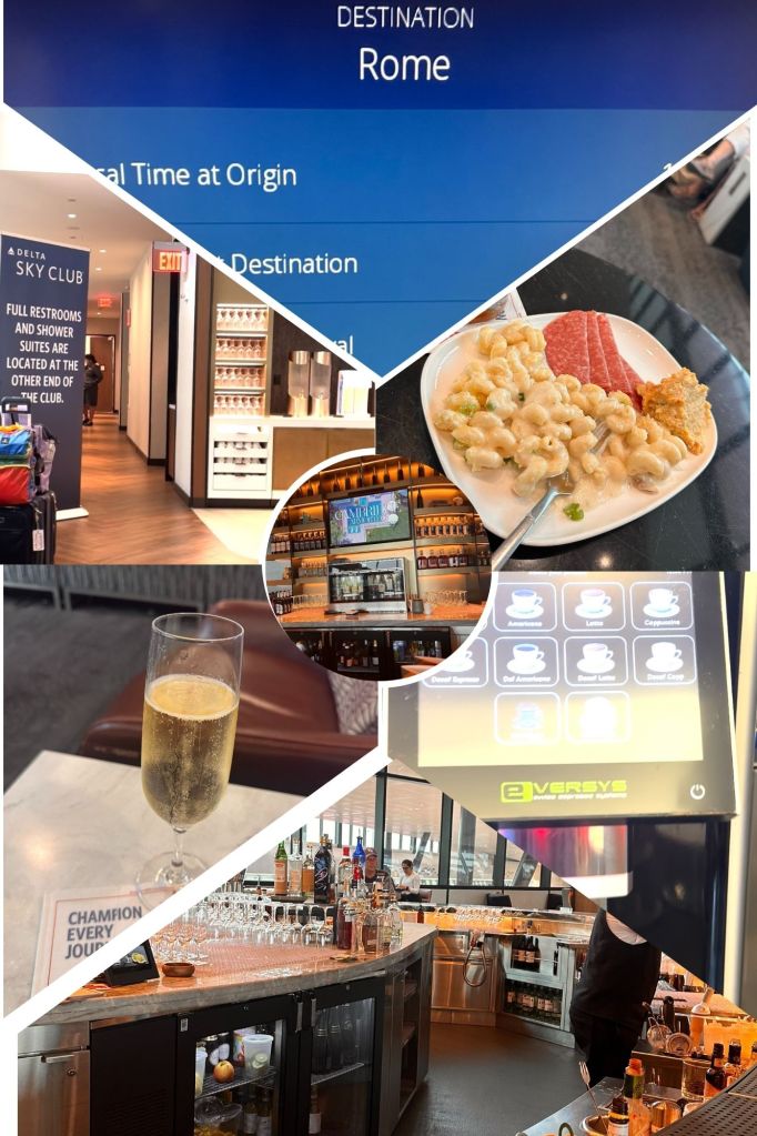 We have always found Delta entertainment to be far superior to most other airlines regardless of where you sit with movies, tv shows and music selections for all tastes so I had to eventually just shut the system off after watching a movie (one of my all time favorites, Grease, with Olivia Newton-John and John Travolta) then listening to music such as Hits of the 70’s, 80’s and the “This is Lizzo” playlists in order to get some shut eye because, well, lie flat seats!!!!! While it was still 2:15 AM in Detroit, it was 8:15 AM in Rome when we landed, though we almost didn’t want to get off of the airplane, Rome was waiting!
